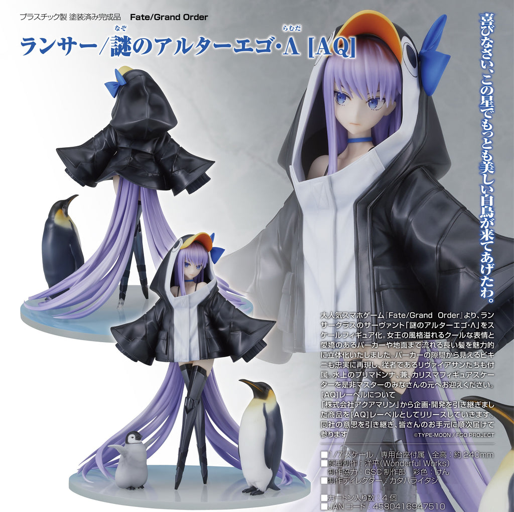 "Rejoice. The planet's most beautiful swan has graced you with her presence." From the popular smartphone game "Fate/Grand Order" comes a scale figure of the Lancer-class servant Lancer/Mysterious Alter Ego Λ. The queen's cool expression, charming hoodie and flowing floor-length hair have been carefully captured in figure form. Her bikini visible beneath her hoodie has also been faithfully created! Her Leviathans have been captured in figure form as well. Please welcome the prima donna above the water, figure skating charismatically across the surface, to your collection!