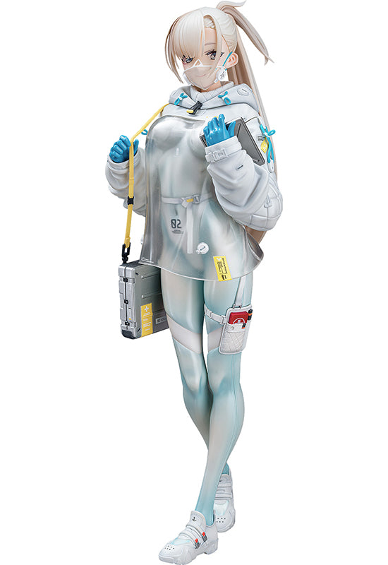 From the illustrator neco’s original illustration series Flower Imitation comes a 1/7 scale figure of DR. The figure brings the original design's clean and futuristic look to life. Translucent parts have been used for the cape and mask, creating a unique atmosphere that is both inorganic yet ephemeral. The white and blue color scheme emphasizes the clean and sophisticated appeal of the illustration, giving the figure a sense of presence fitting for a medical professional. DR.'s physique has been carefully sculpted to the smallest details, with the outfit accentuated by her curves and flowing hair providing a sense of airiness unique to the figure. Interchangeable face plates are included to display her with her mask on or off, allowing for DR.'s gentle smile to show through. Be sure to add DR. to your collection!