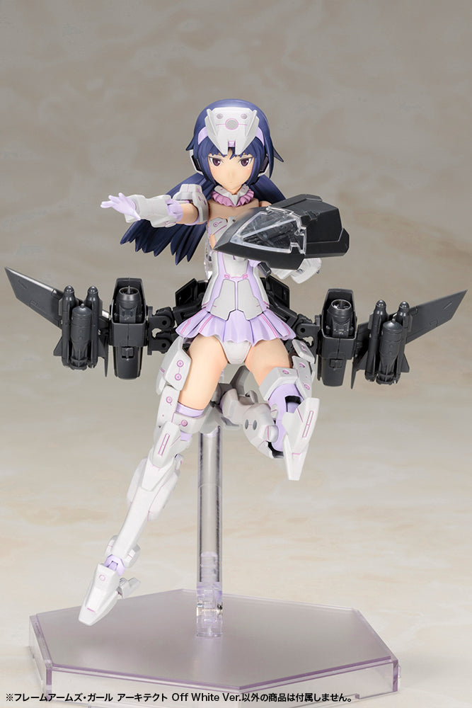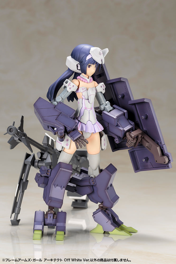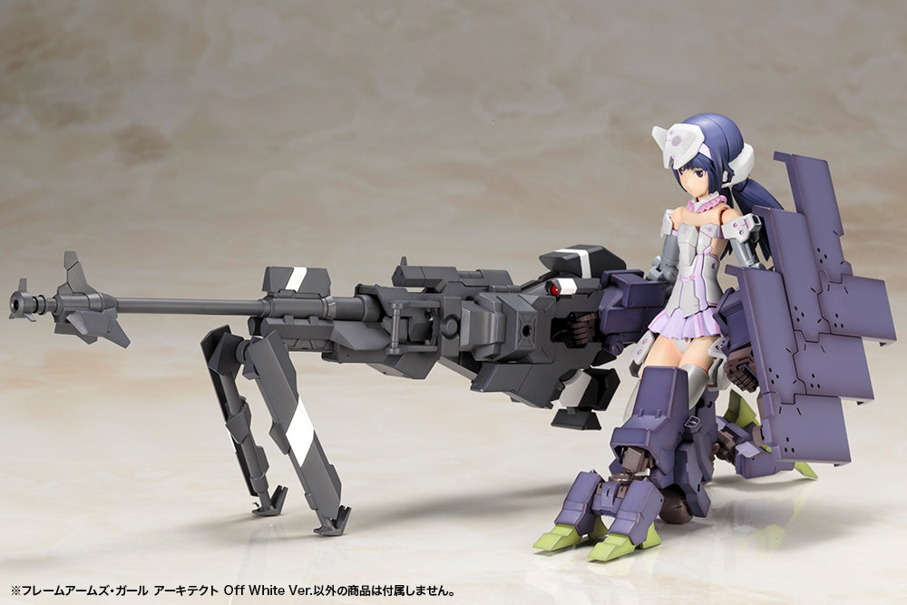 For the latest entry in the Frame Arms Girls series, the base color of "Architect" has been changed to an off white color often seen in the Frame Arms series.