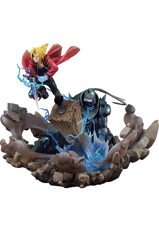 From "Fullmetal Alchemist: Brotherhood" comes a large-size statue of Edward Elric and Alphonse Elric! The statue features a perfectly captured still of the Elric brothers in battle, with their surroundings also perfectly crafted and incorporated into a single statue. Various small details like the dust clouds, debris and alchemical energy discharge have all been created in incredible detail. Be sure to add this spectacular statue that encapsulates the unique charm of Fullmetal Alchemist to your collection.