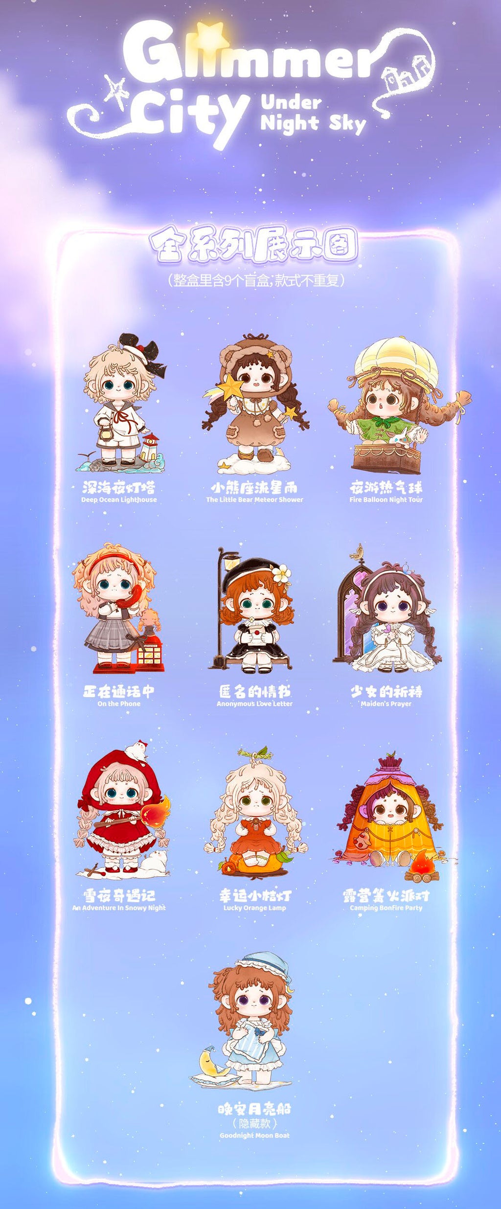 Designed and produced by Heyone, here comes the new series trading figurine set "FURFUR-GLIMMER CITY UNDER NIGHT SKY"! Featuring glow-in-the-dark materials in some parts, these figures shine softly in the dark. They light up the stillness of the night and bring a warm, cozy moment to your space! Hope you enjoy the fantastic designs of this series!