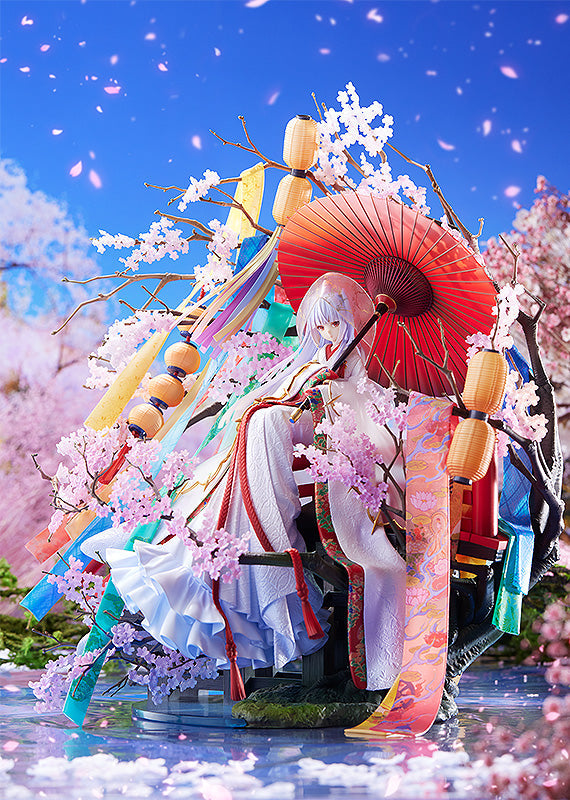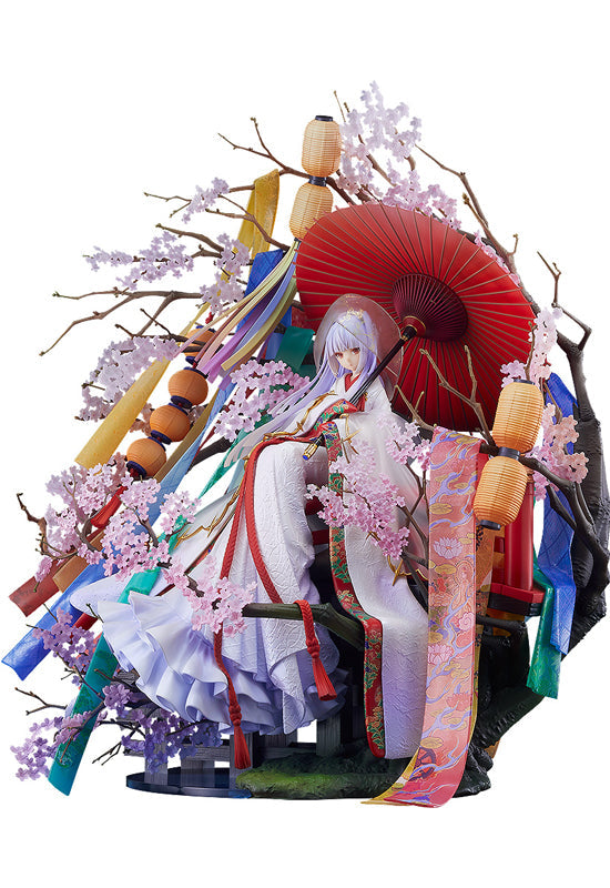 The second figure in the Illustration Revelation series is a figure recreation fuzichoco's illustration "The Ghost Bride" used as the main visual for her 2020 exhibition "Saigenkyo". The illustration, featuring a beautiful bride from realm beyond our own dressed in a luxurious kimono and surrounded by tanmono fabric draped from a tree, has been carefully captured in figure form. With an incredible level of detail from top to bottom, we invite you to view and enjoy this awe-inspiring figure from every angle.