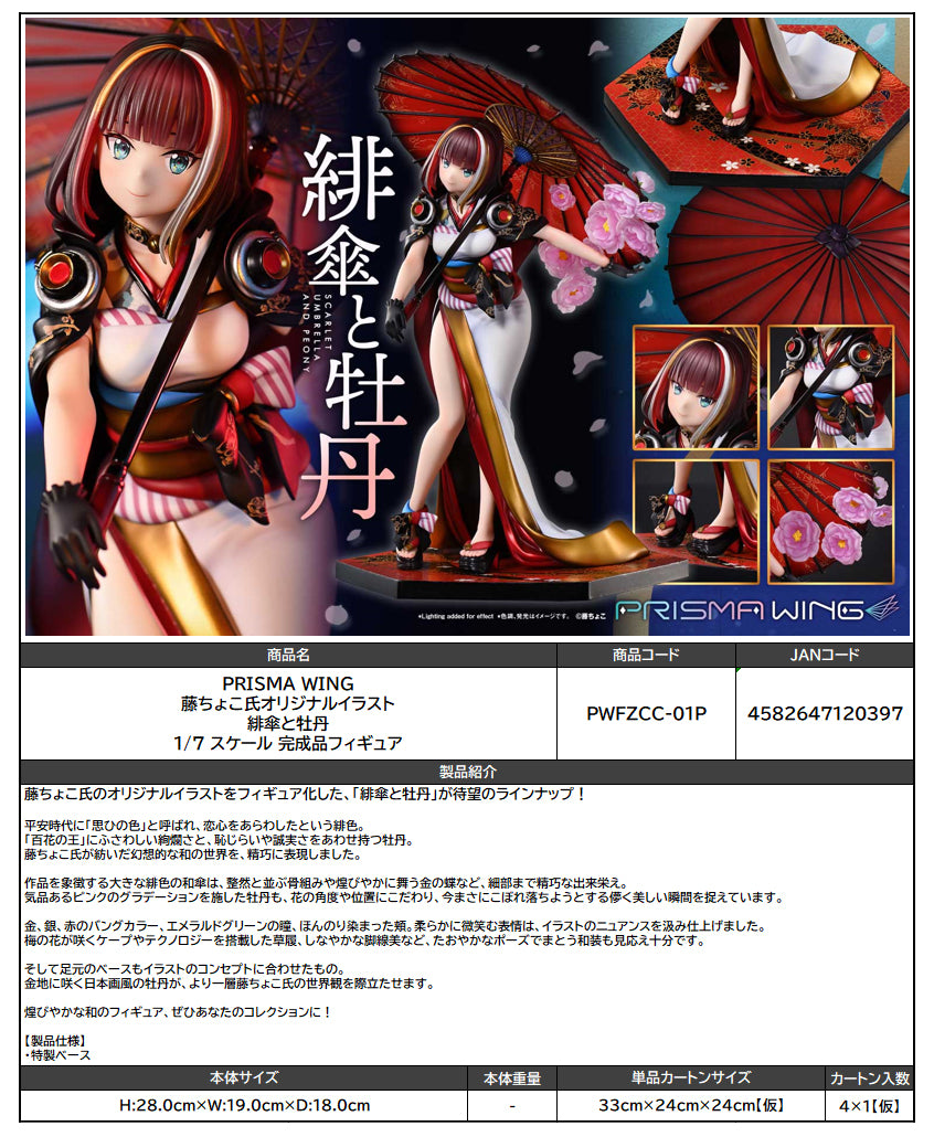 Fuzichoco Original Illustration Prime 1 Studio PRISMA WING Scarlet Umbrella and Peony 1/7 Scale Figure