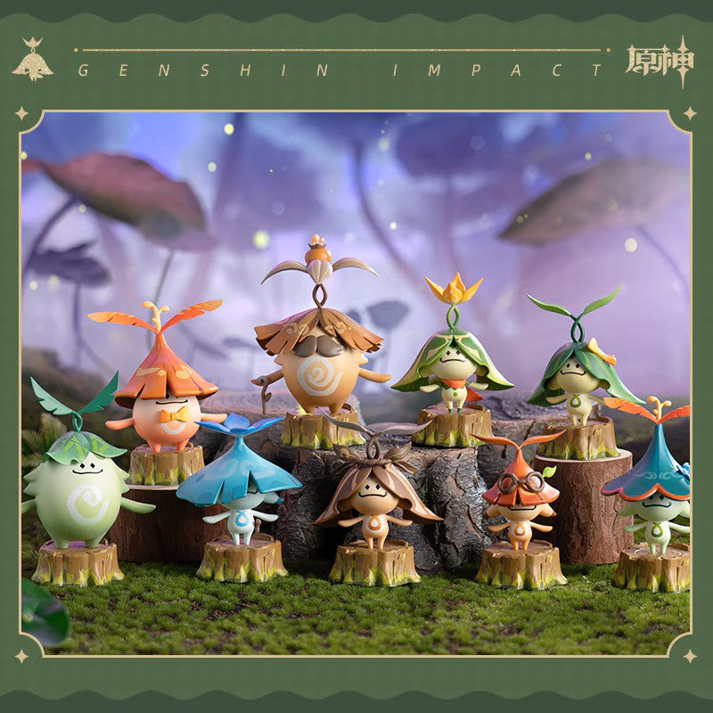 From Genshin Impact, introduce a whimsical mini figure collection celebrating the beloved forest spirits, the Aranara.
