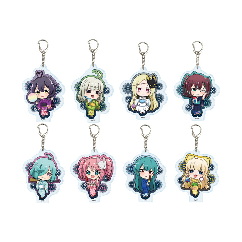 This is an acrylic keychain that has been die-cut, printed, and processed.