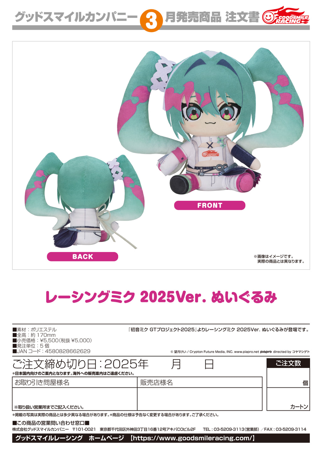 Hatsune Miku GT Project 2025 GOODSMILE RACING Racing Miku 2025 Ver. Plushie