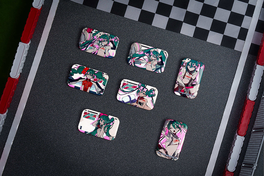 From "Hatsune Miku GT Project" comes collectible pinback buttons (total of 7 designs)! A collection of pinback buttons with glitter finish that gives off a beautiful glow when light is reflected!