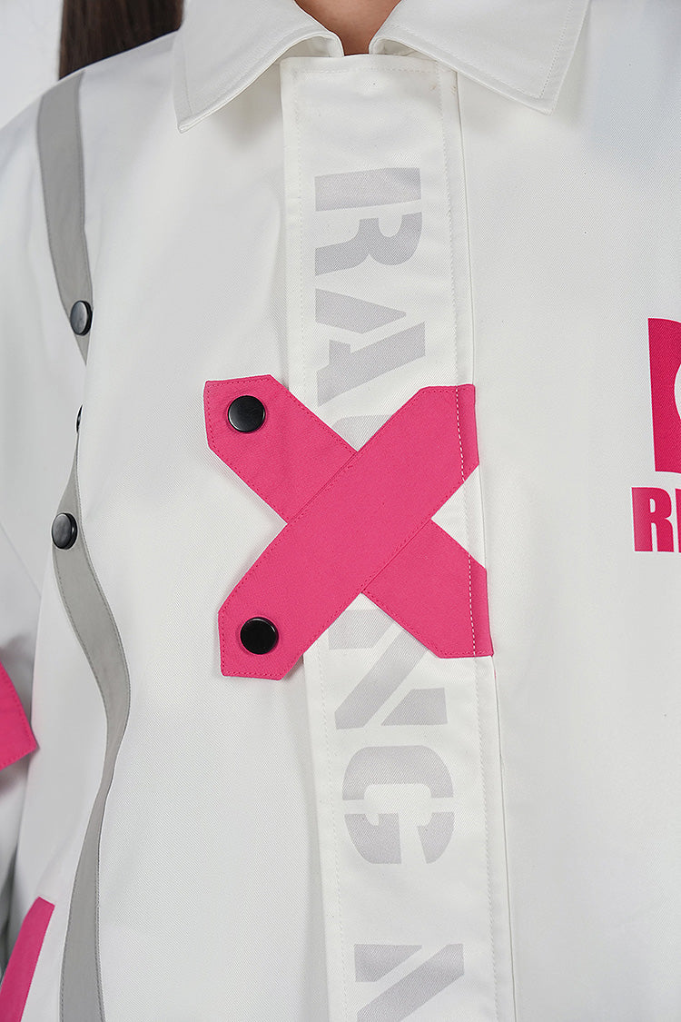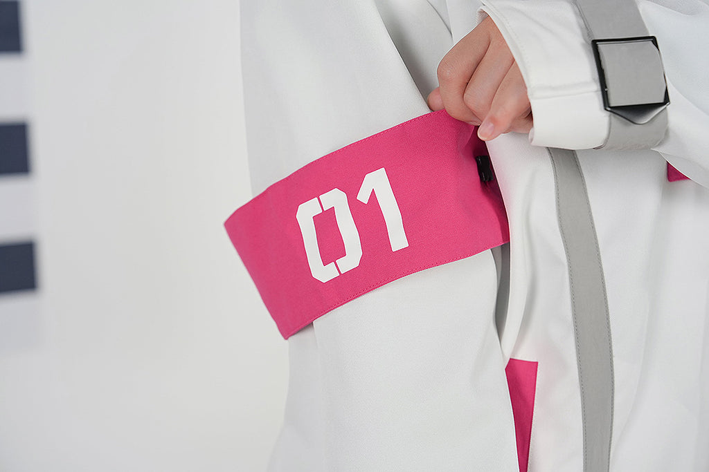 From "Hatsune Miku GT Project" comes a Racing Miku 2025 tracksuit jacket! The jacket features the Racing Miku 2025 design, with a 01 logo printed on the shoulder emblem. The straps and hooks allow for easy use with other merch!