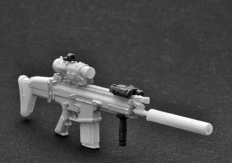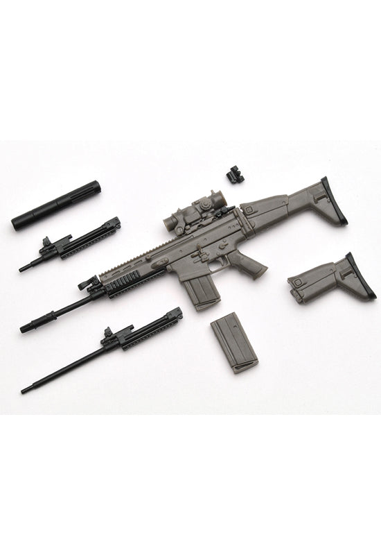 The next generation rifle used by the US Special Operations Forces. This kit reproduces the H (Heavy) model that uses 7.62mm bullets in FDE colors. Accessories include barrel assemblies of different lengths, a Specter DR type scope and suppressor.