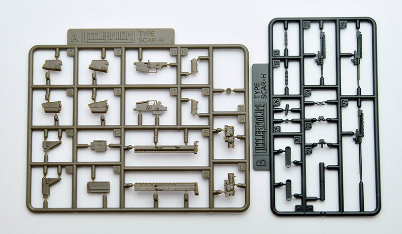 This is a 1/12 scale item that will be made into a kit of "firearms". The second series will have two types of lineup: the next-generation battle rifle SCAR-H type and the large-caliber anti-material rifle M82A2 type. It is an assembly-type runner kit that emphasizes the reproduction of details.