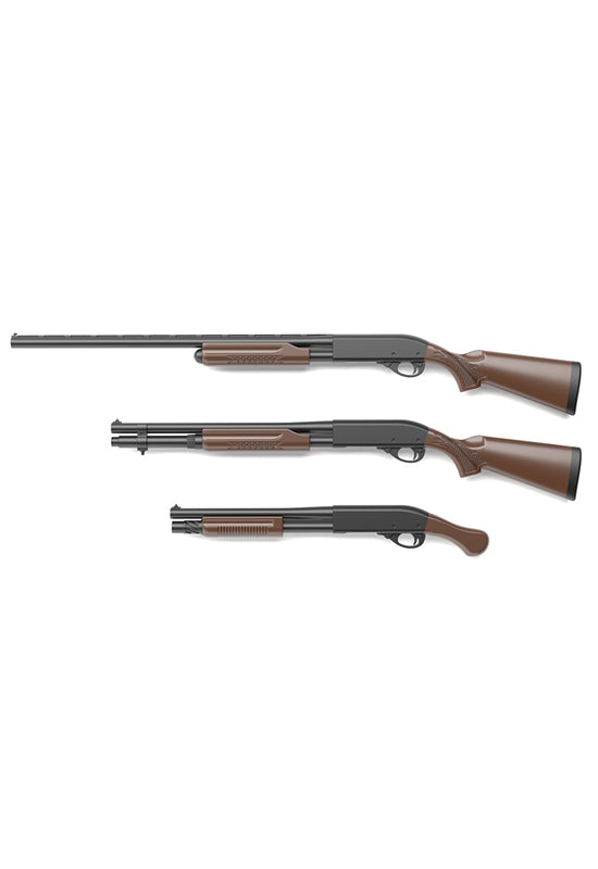 The M870 is a classic pump-action shotgun developed in the 1960s and adopted by military and police forces around the world. This time, we have a lineup of three sizes, large, medium and small, from the models in this series that are widely used by both public and private sectors. The long-length 28-inch barrel model is the "Wingmaster." The mid-length 18.5-inch model is the "Home Defense." The short-length 14-inch barrel model is based on the "TAC-14."