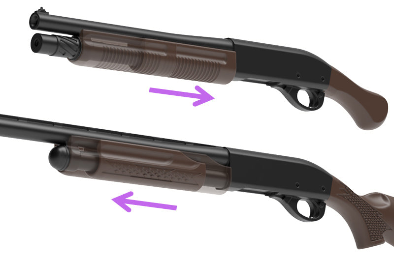 It is divided into three parts: the stock, receiver and barrel, and the fore-end, so you can mix and match the three parts to create your own original combination. Pump action movement is also possible.