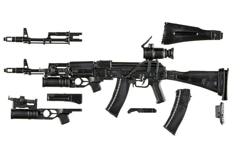 The AK74M with the GP25 grenade launcher attached is recreated in 1/12 scale. It also includes a stock with a recoil pad to absorb the powerful recoil, and a 2.8x 1P78-type scope. (It can also be assembled without the launcher attached.)