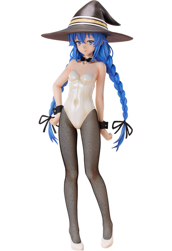 From the anime series "Mushoku Tensei: Jobless Reincarnation" comes a 1/4 scale figure of the blue-haired sorceress Roxy in an alluring bunny outfit! Her textured bunny suit and real net tights further emphasize her physique. Her iconic long braids, flowing hair and embarrassed smile have been faithfully captured in figure form. Interchangeable hat and bunny ear parts for different styles are included. Be sure to add the alluring and adorable Roxy to your collection!