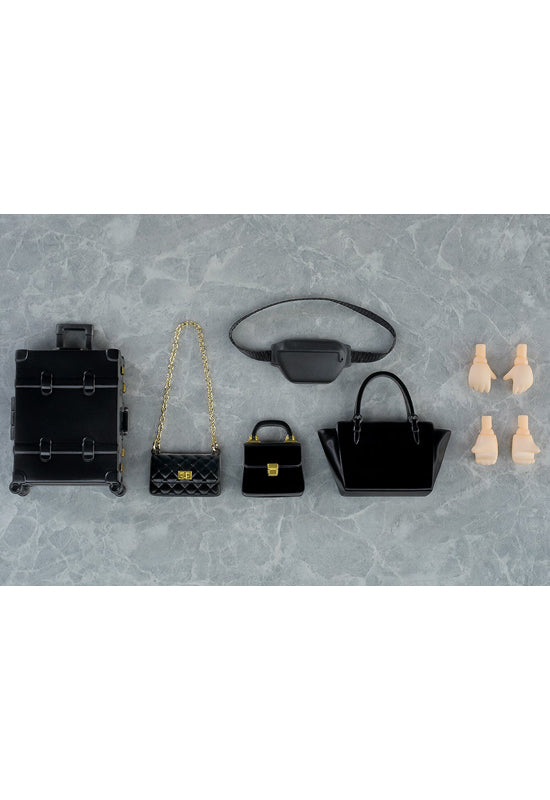 Presenting a bag and interchangeable hand parts set for use with your Nendoroid Dolls! Enjoy using them with your Nendoroid Dolls. Includes tote bag, handbag, bag with chain, shoulder pouch, suitcase, and assorted hand parts.