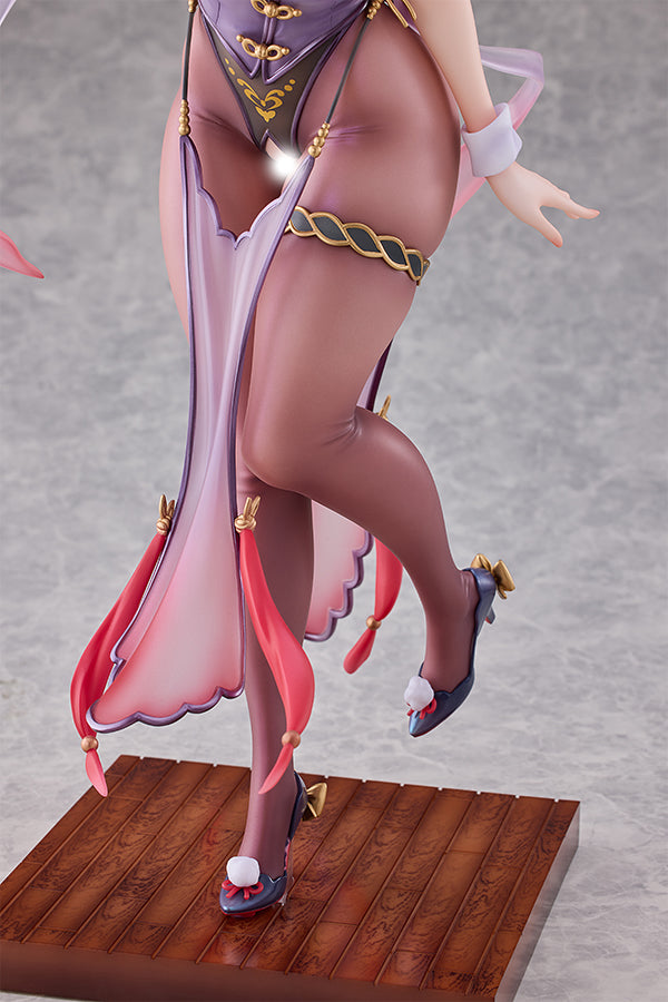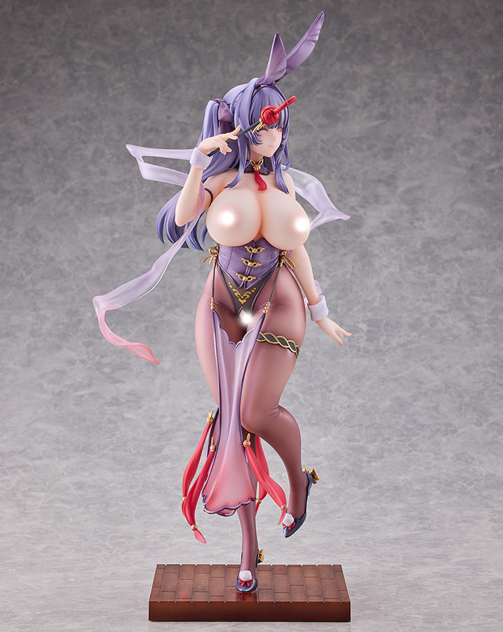 Yuri, part of the poster girl duo of popular illustrator Xin, is once again in 1/4 scale! This figure is based on the work of popular illustrator Xin and in cooperation with HOTVENUS with the production. Yuri-chan, one of the poster girls of "MoeHime Union," appears again as a Chinese dress bunny!! No doubt, you will be captivated by Yuri's bountiful tiddies and affable smile wrapped in her new charming purple Chinese bunny dress. This traditional Chinese dress matches the color of Yuri's hair, which introduces Yuri's new-found charms while also expressing the figure's delicate sculpt and paintwork. Enjoy various display angles with the very important interchangeable chest part. The crotch part certainly casts off. A rare Chinese dress bunny entry in the bunny series! Also, highly recommended for bunny fans such as you. Please welcome Yuri together with her partner "Cheongsam Bunny Stella."