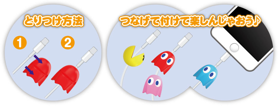 From the PAC-MAN series of games started in 1980 comes cable mascots! Enjoy attaching to your charging cables, headphone cables, etc.