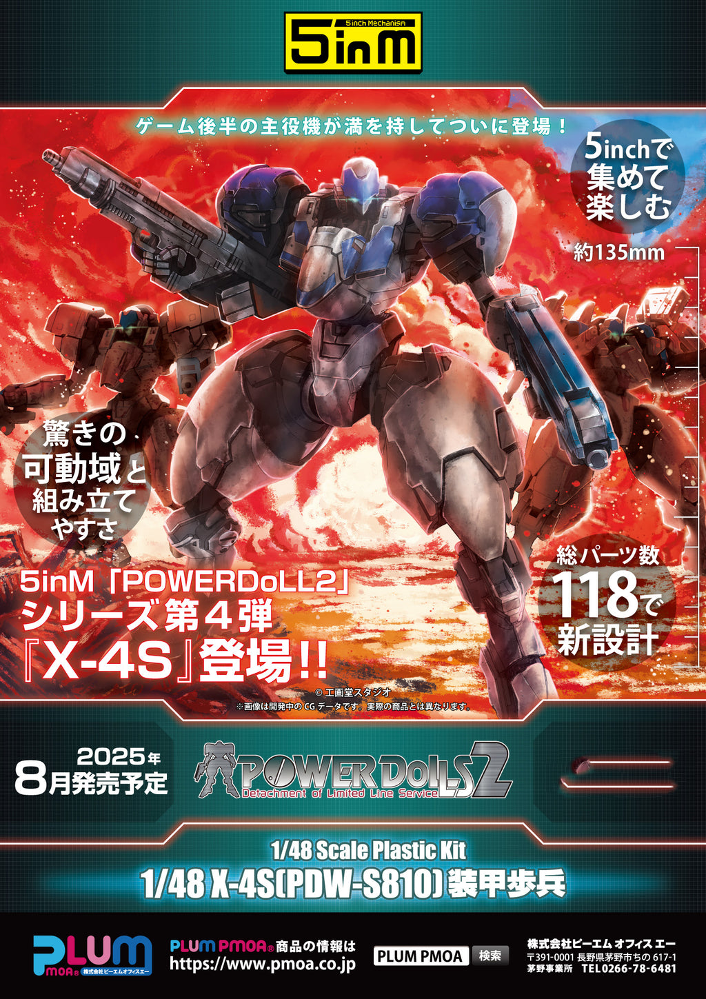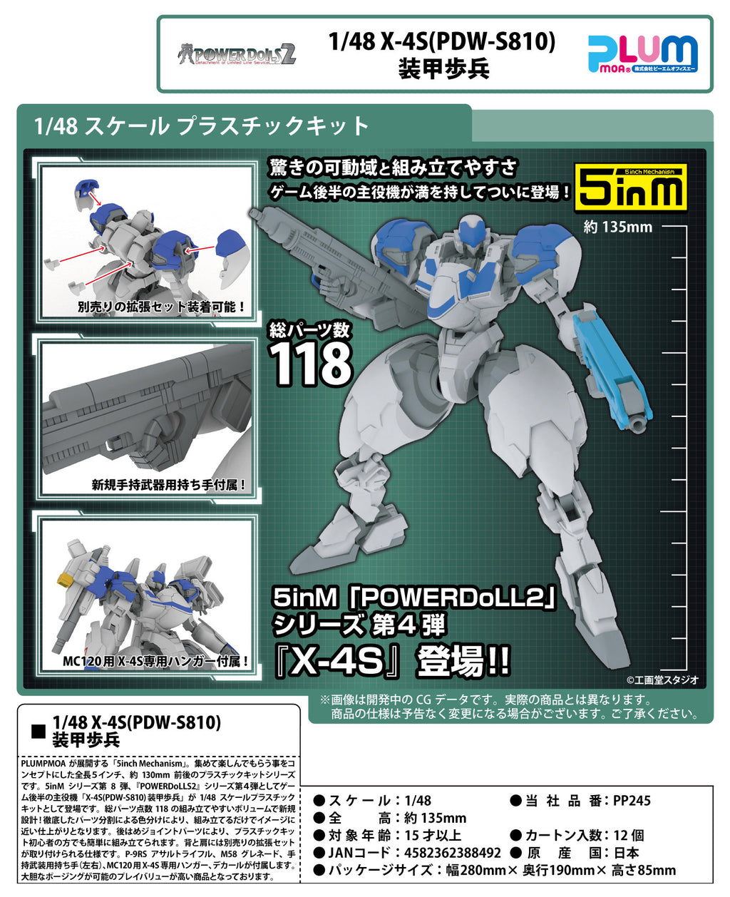 As the 8th installment of the 5inM series and the 4th installment of the "POWERDoLLS2" series, the main machine in the latter half of the game, "X-4S (PDW-S810) Armored Infantryman" is now available as a 1/48 scale plastic kit. It