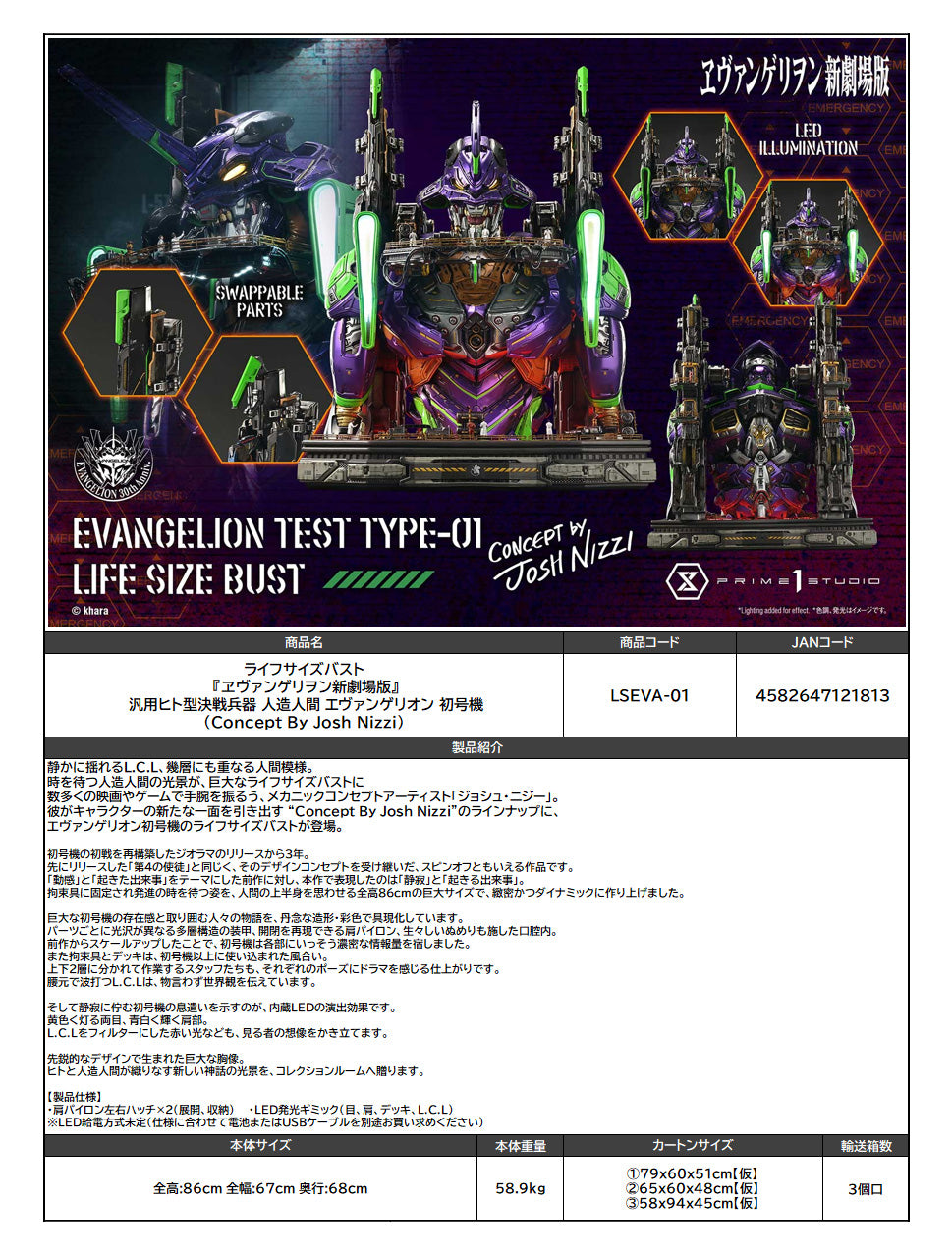 Known for his work on numerous films and games, mechanical concept artist Josh Nizzi brings new depth to iconic characters through the "Concept By Josh Nizzi" lineup. Now, Evangelion Unit-01 joins the series as a life-size bust.