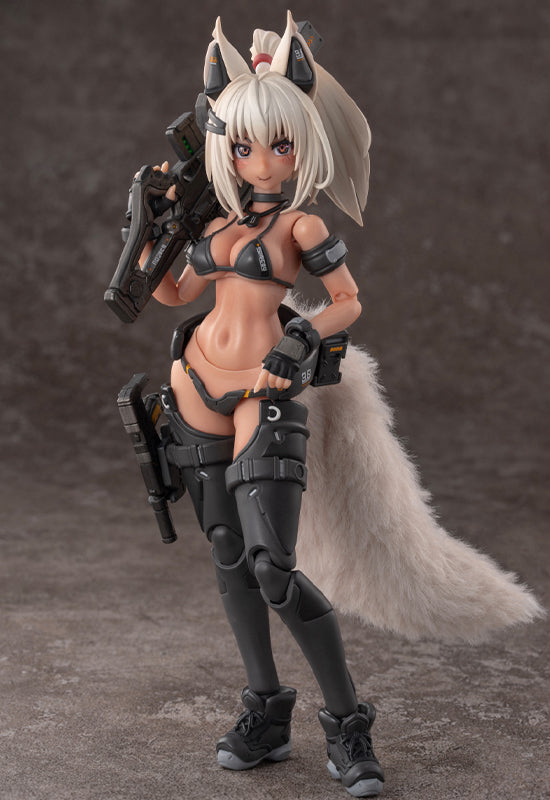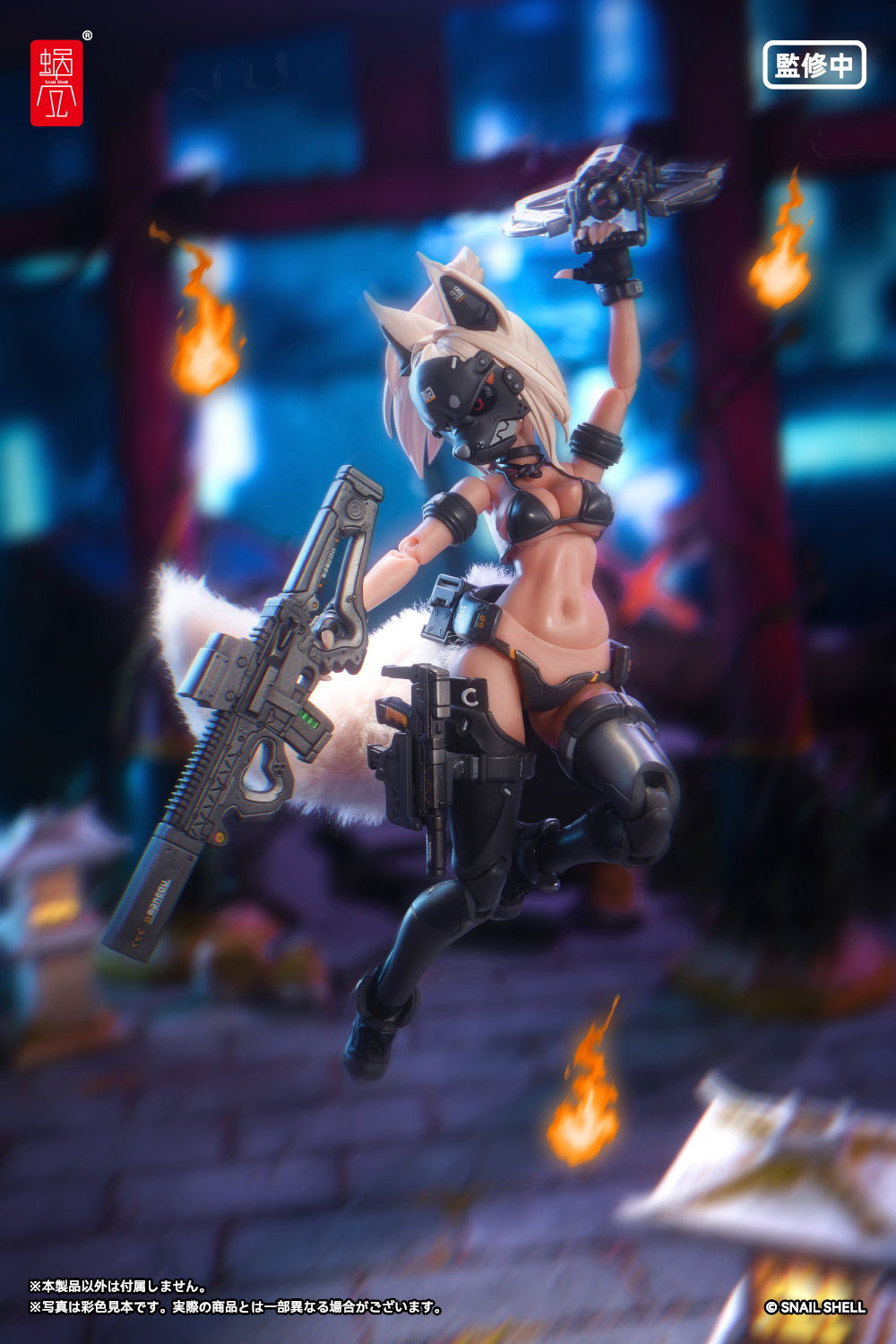 Main figure, Face part w/Fully movable eyes x2 (smiling, opening mouth, including default), Alternative front hair part (w/Tactical mask), Mini tool for changing eye direction NEO, Alternative hand part x6 sets (including default), Primary weapon "KITUNEBI Mk.1", Secondary weapon "KITUNEBUKU Mk.1", Drone "KITUNEME" x2