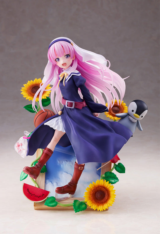 From "The Day I Became God" comes the “vignette-style” 1/7 scale figure of Hina! This unique figure creates a scene that captures her unforgettable summer memories with Yota! Hina’s monastic habit appear fluffy as the wind gently blows through it. The clear pink parts are perfectly used to give her long hair a light color and her soft expression coupled with that cute smile really make this figure a must see!