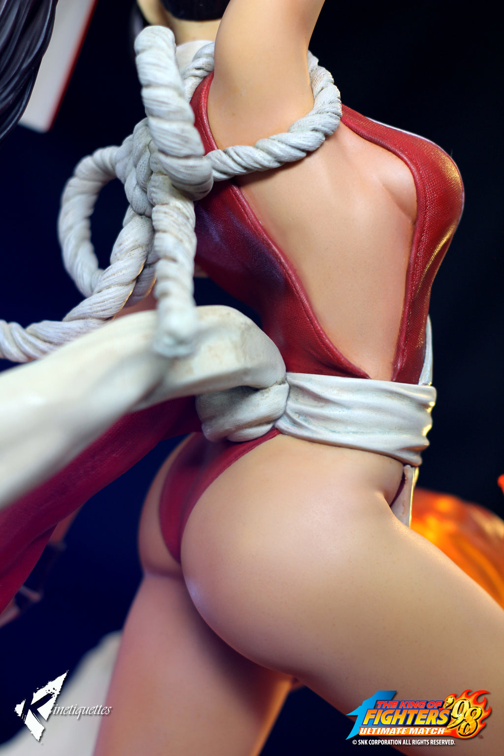 This is a diorama designed and supervised by Stanley "Artgerm" Lau at every stage of development. The base of this statue is inspired by her iconic Fatal Fury stage depicting the bamboo raft on water as she gracefully steps over it. For the first time in Kinetiquettes' history, the maquette features mesmerizing acrylic eyes and hyper-realistic translucent resin skin; and clear resin for the flames to achieve the best interpretation of this character to date.