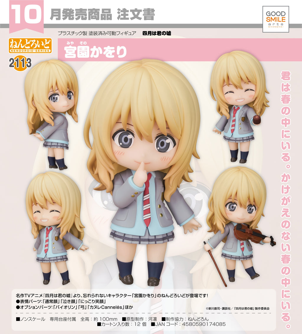 From the popular anime series "Your Lie in April" comes a Nendoroid of the unforgettable Kaori Miyazono.